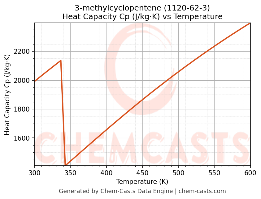- Specific heat capacity (Cp) indicates the amount of energy required to raise the temperature of 3-methylcyclopentene and is critical for energy balance and heat-exchanger design.