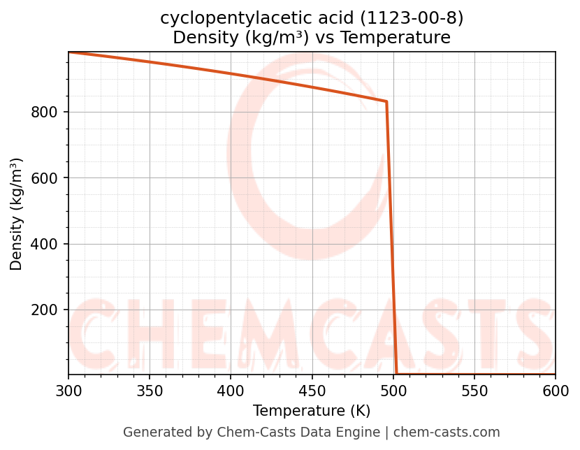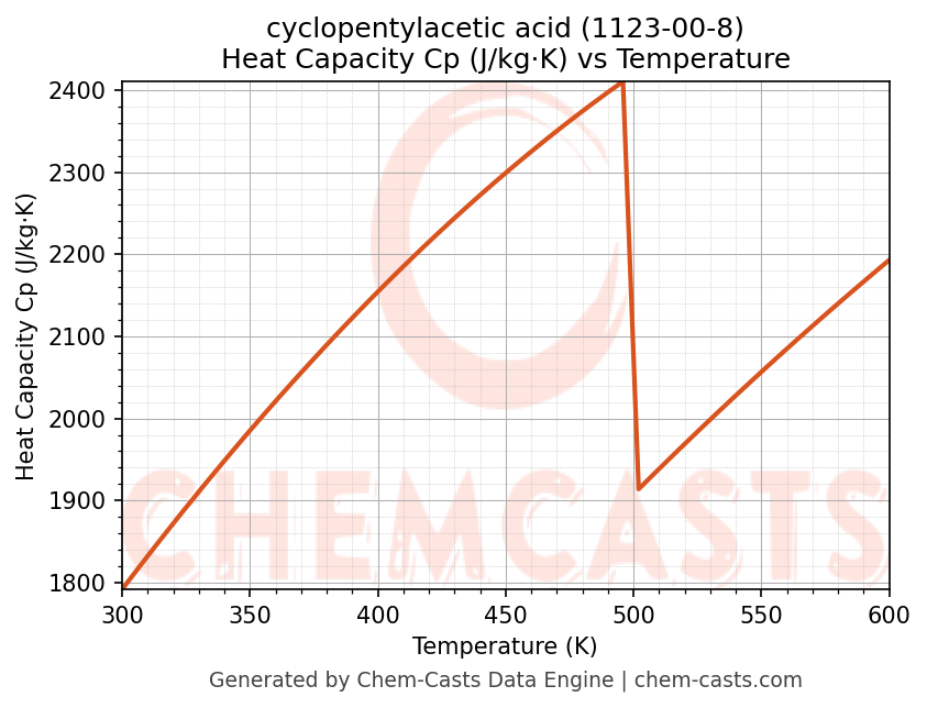 - Specific heat capacity (Cp) indicates the amount of energy required to raise the temperature of cyclopentylacetic acid and is critical for energy balance and heat-exchanger design.
