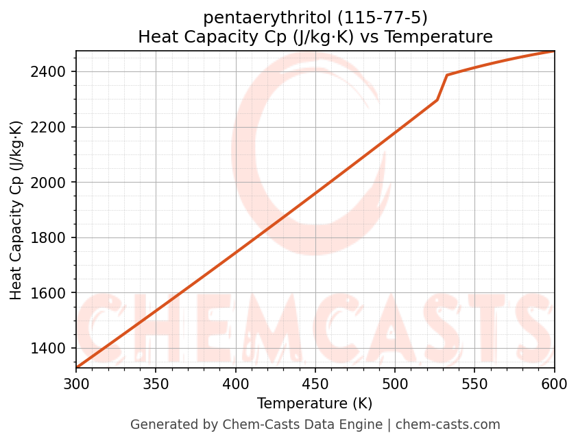 - Specific heat capacity (Cp) indicates the amount of energy required to raise the temperature of pentaerythritol and is critical for energy balance and heat-exchanger design.