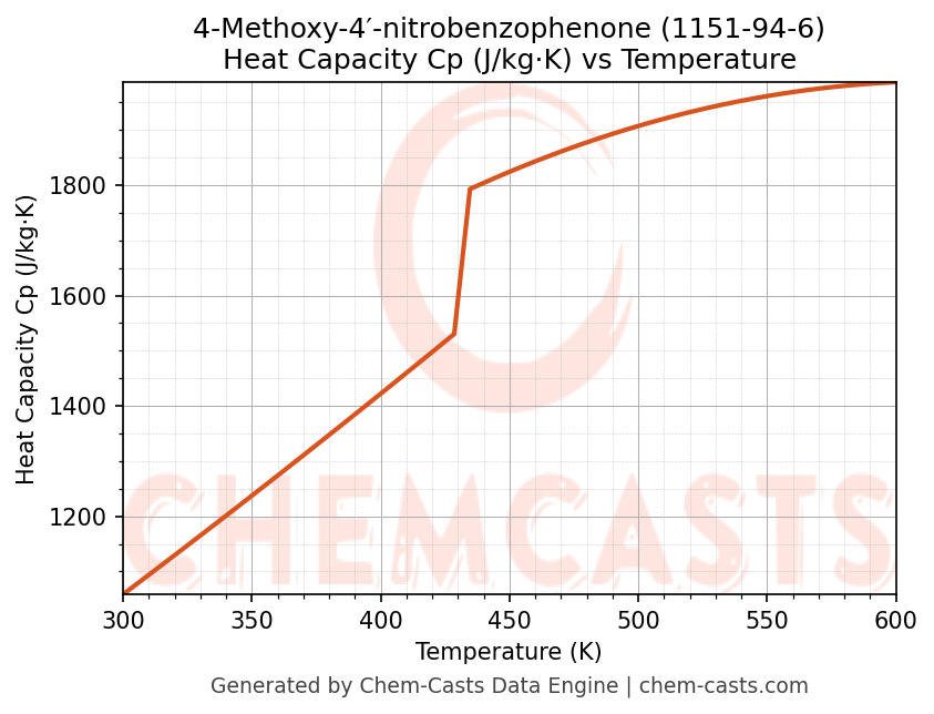 - Specific heat capacity (Cp) indicates the amount of energy required to raise the temperature of 4-Methoxy-4′-nitrobenzophenone and is critical for energy balance and heat-exchanger design.