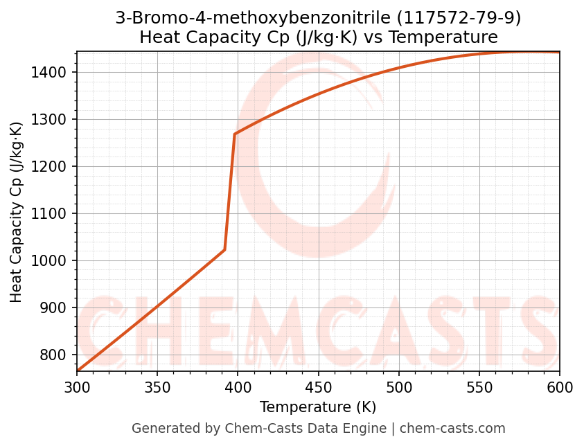 - Specific heat capacity (Cp) indicates the amount of energy required to raise the temperature of 3-Bromo-4-methoxybenzonitrile and is critical for energy balance and heat-exchanger design.
