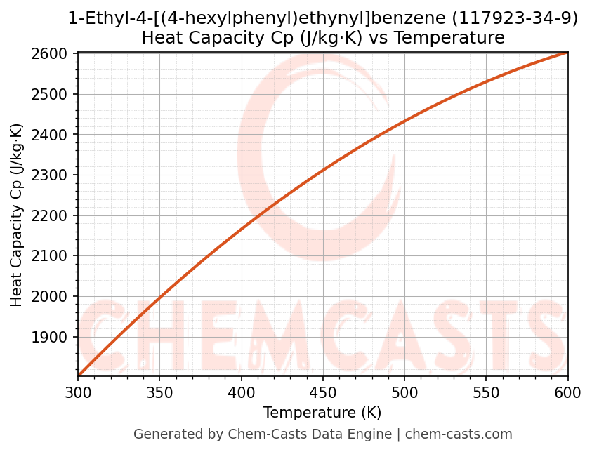 ![Heat Capacity (Cp) vs Temperature chart for 1-Ethyl-4-[(4-hexylphenyl)ethynyl]benzene (CAS 117923-34-9)](https://chemcasts-prod.s3.ap-south-1.amazonaws.com/chem_plots_pconst/117923-34-9-cp.png)