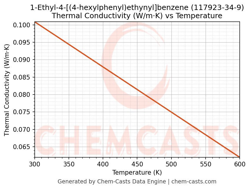![Thermal Conductivity vs Temperature chart for 1-Ethyl-4-[(4-hexylphenyl)ethynyl]benzene (CAS 117923-34-9)](https://chemcasts-prod.s3.ap-south-1.amazonaws.com/chem_plots_pconst/117923-34-9-thermal_conductivity.png)