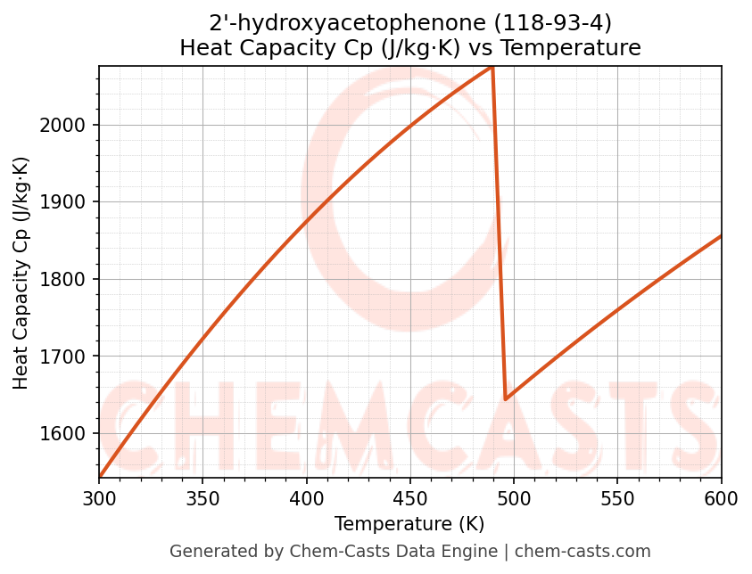 - Specific heat capacity (Cp) indicates the amount of energy required to raise the temperature of 2'-hydroxyacetophenone and is critical for energy balance and heat-exchanger design.