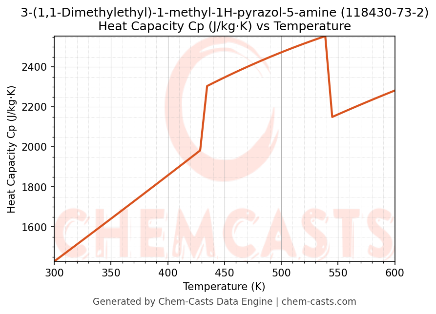 - Specific heat capacity (Cp) indicates the amount of energy required to raise the temperature of 3-(1,1-Dimethylethyl)-1-methyl-1H-pyrazol-5-amine and is critical for energy balance and heat-exchanger design.