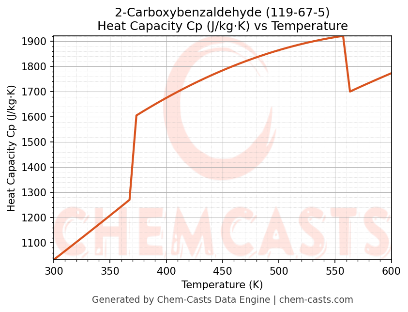 - Specific heat capacity (Cp) indicates the amount of energy required to raise the temperature of 2-Carboxybenzaldehyde and is critical for energy balance and heat-exchanger design.
