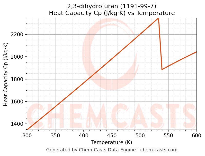 - Specific heat capacity (Cp) indicates the amount of energy required to raise the temperature of 2,3-dihydrofuran and is critical for energy balance and heat-exchanger design.