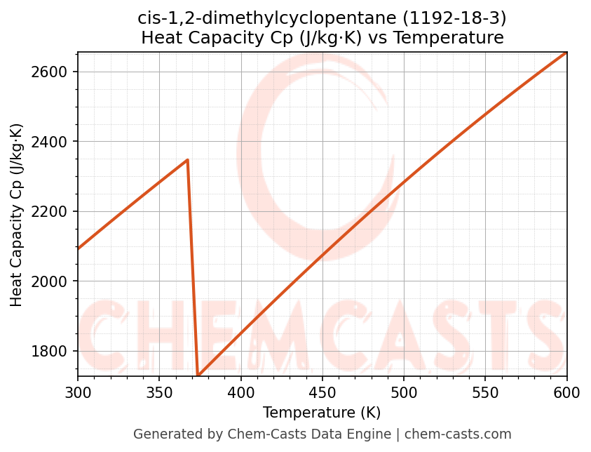 - Specific heat capacity (Cp) indicates the amount of energy required to raise the temperature of cis-1,2-dimethylcyclopentane and is critical for energy balance and heat-exchanger design.