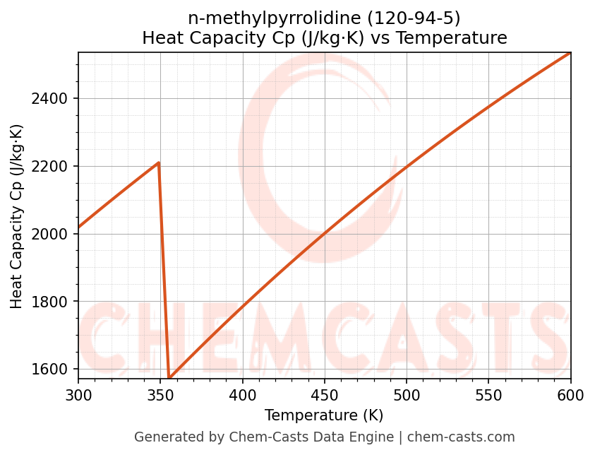 - Specific heat capacity (Cp) indicates the amount of energy required to raise the temperature of n-methylpyrrolidine and is critical for energy balance and heat-exchanger design.