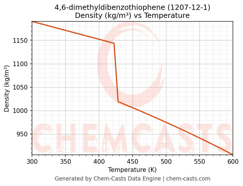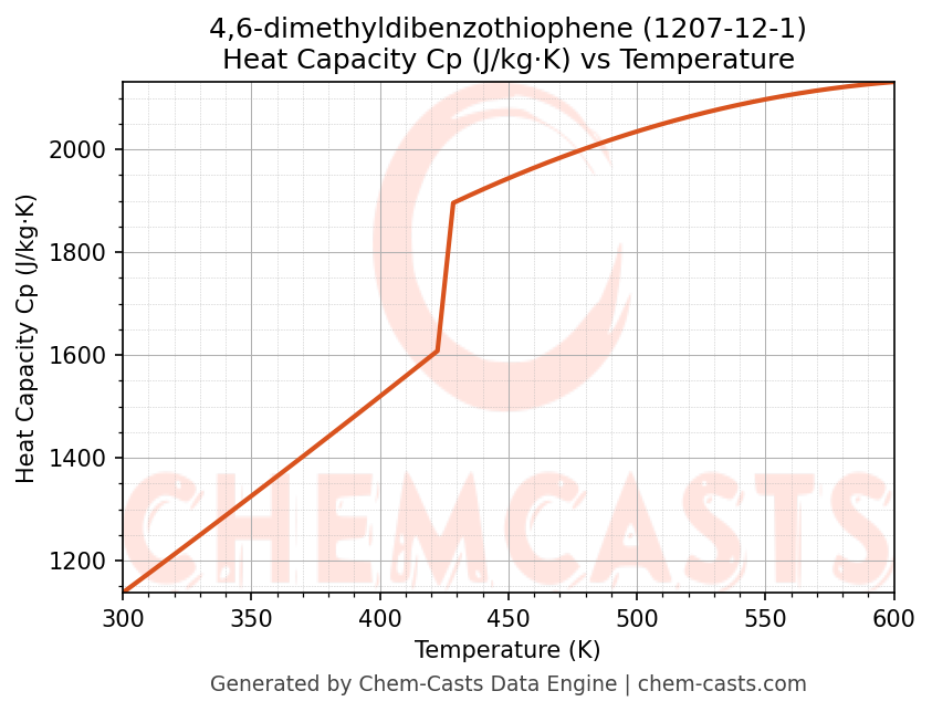 - Specific heat capacity (Cp) indicates the amount of energy required to raise the temperature of 4,6-dimethyldibenzothiophene and is critical for energy balance and heat-exchanger design.