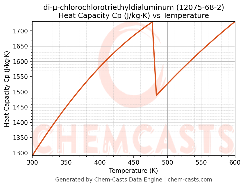 - Specific heat capacity (Cp) indicates the amount of energy required to raise the temperature of di-μ-chlorochlorotriethyldialuminum and is critical for energy balance and heat-exchanger design.