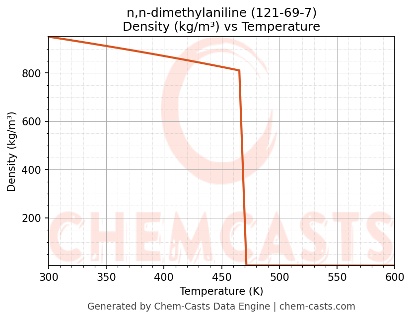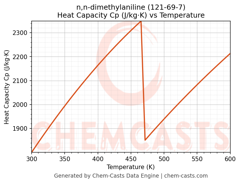 - Specific heat capacity (Cp) indicates the amount of energy required to raise the temperature of n,n-dimethylaniline and is critical for energy balance and heat-exchanger design.