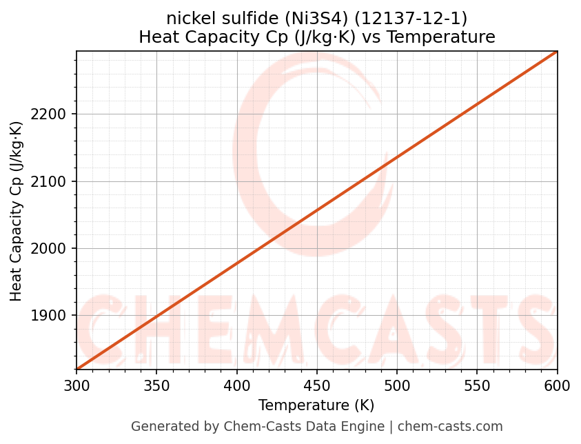 - Specific heat capacity (Cp) indicates the amount of energy required to raise the temperature of nickel sulfide (Ni3S4) and is critical for energy balance and heat-exchanger design.