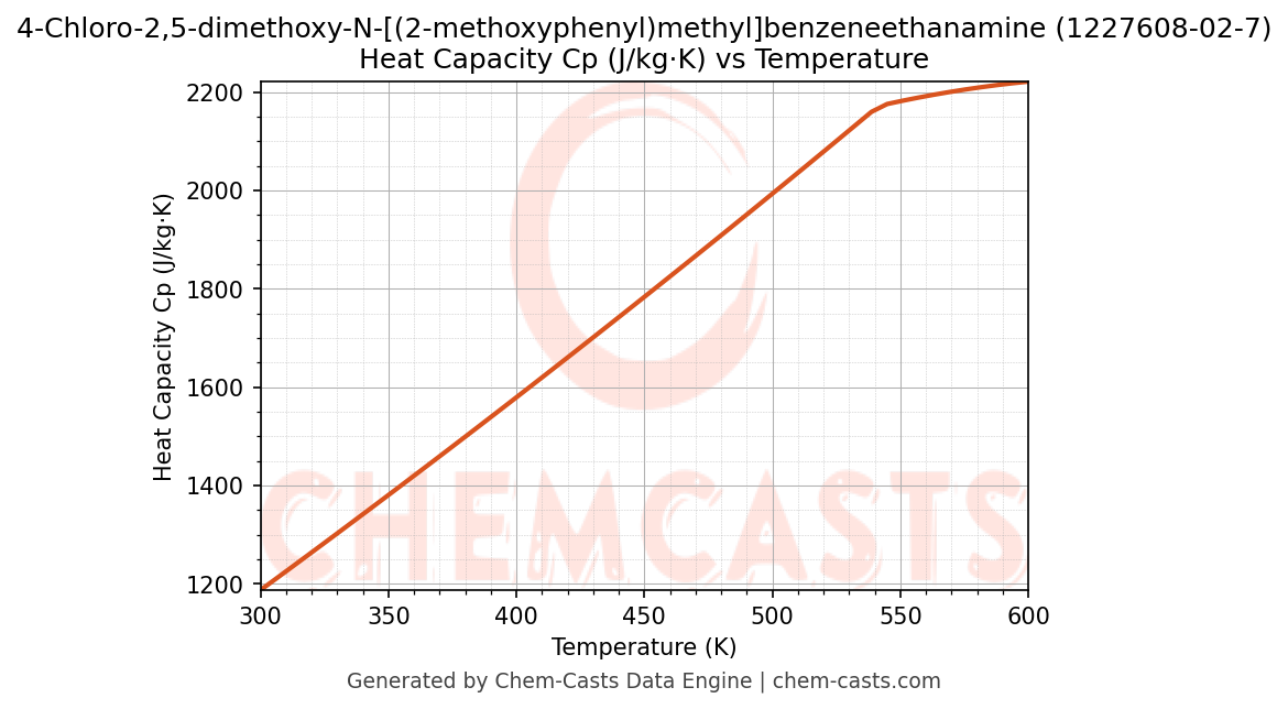 ![Heat Capacity (Cp) vs Temperature chart for 4-Chloro-2,5-dimethoxy-N-[(2-methoxyphenyl)methyl]benzeneethanamine (CAS 1227608-02-7)](https://chemcasts-prod.s3.ap-south-1.amazonaws.com/chem_plots_pconst/1227608-02-7-cp.png)