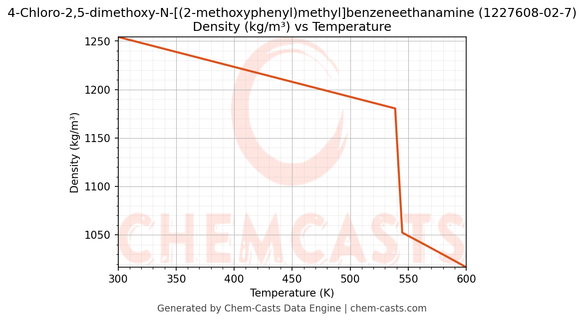 ![Density vs Temperature chart for 4-Chloro-2,5-dimethoxy-N-[(2-methoxyphenyl)methyl]benzeneethanamine (CAS 1227608-02-7)](https://chemcasts-prod.s3.ap-south-1.amazonaws.com/chem_plots_pconst/1227608-02-7-density.png)