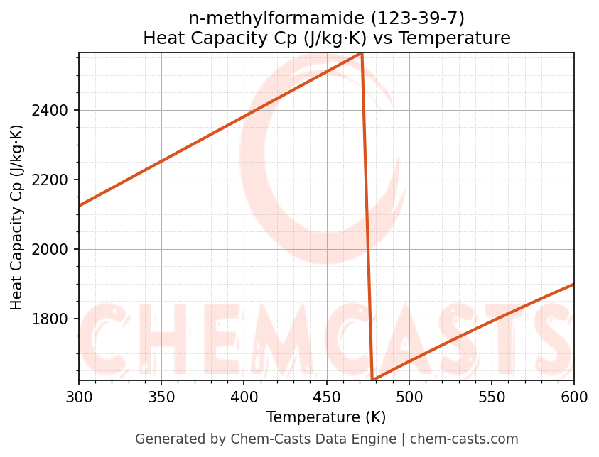 - Specific heat capacity (Cp) indicates the amount of energy required to raise the temperature of n-methylformamide and is critical for energy balance and heat-exchanger design.
