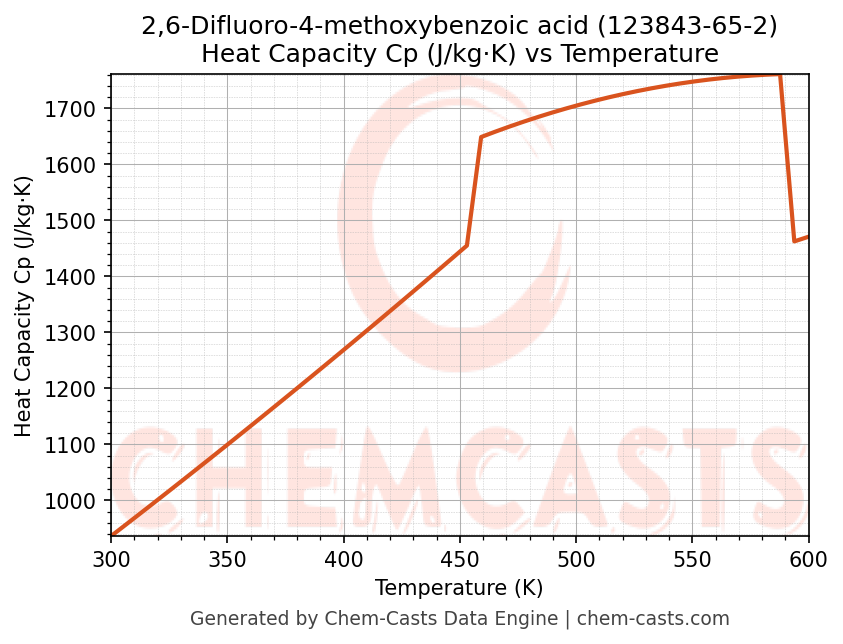- Specific heat capacity (Cp) indicates the amount of energy required to raise the temperature of 2,6-Difluoro-4-methoxybenzoic acid and is critical for energy balance and heat-exchanger design.