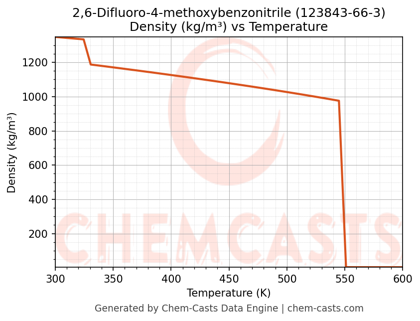 This page presents the temperature-dependent thermodynamic and transport properties of 2,6-Difluoro-4-methoxybenzonitrile (CAS 123843-66-3) calculated at a constant pressure of 1 atm (101325 Pa) over the temperature range 250-500 K.