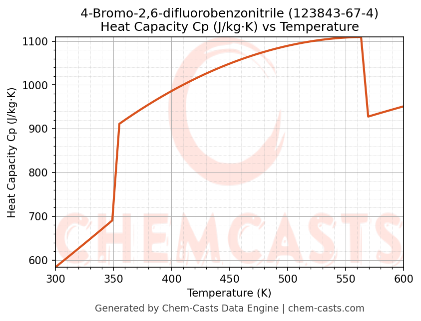 - Specific heat capacity (Cp) indicates the amount of energy required to raise the temperature of 4-Bromo-2,6-difluorobenzonitrile and is critical for energy balance and heat-exchanger design.