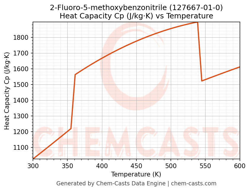- Specific heat capacity (Cp) indicates the amount of energy required to raise the temperature of 2-Fluoro-5-methoxybenzonitrile and is critical for energy balance and heat-exchanger design.