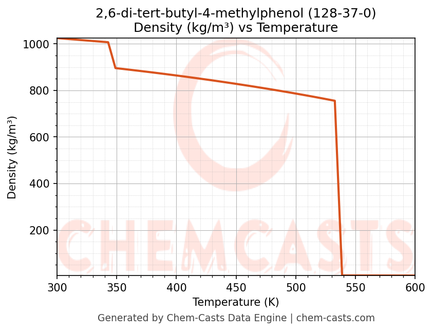 2,6-di-tert-butyl-4-methylphenol Thermodynamic Properties vs Temperature (CAS 128-37-0)