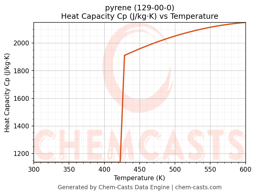 - Specific heat capacity (Cp) indicates the amount of energy required to raise the temperature of pyrene and is critical for energy balance and heat-exchanger design.