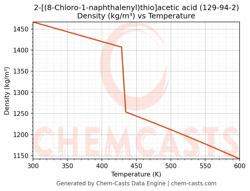![Density vs Temperature chart for 2-[(8-Chloro-1-naphthalenyl)thio]acetic acid (CAS 129-94-2)](https://chemcasts-prod.s3.ap-south-1.amazonaws.com/chem_plots_pconst/129-94-2-density.png)