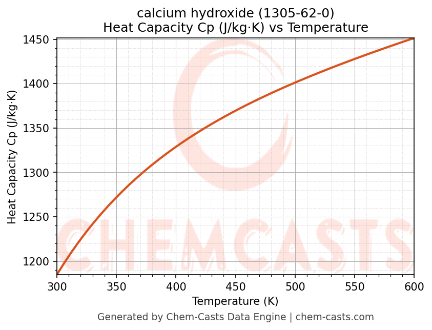 - Specific heat capacity (Cp) indicates the amount of energy required to raise the temperature of calcium hydroxide and is critical for energy balance and heat-exchanger design.