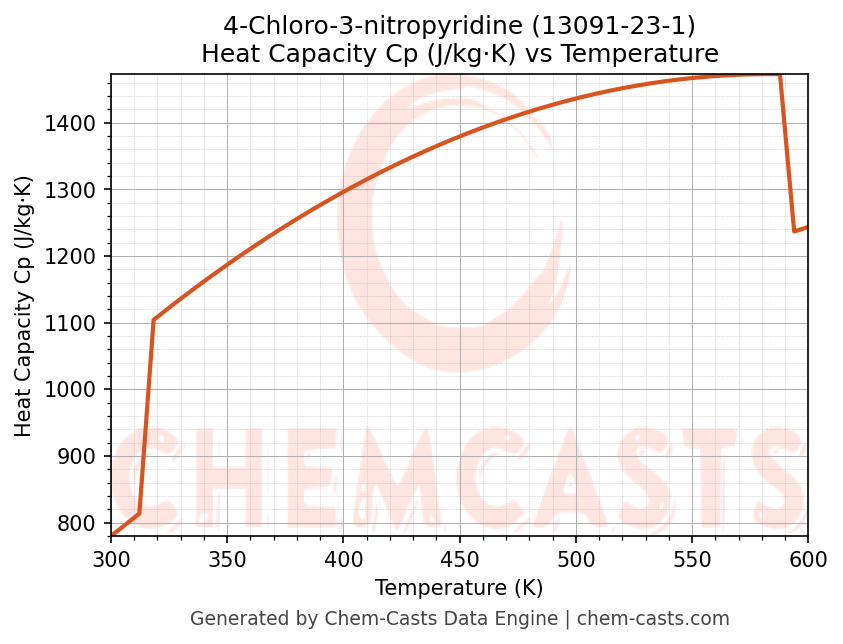 - Specific heat capacity (Cp) indicates the amount of energy required to raise the temperature of 4-Chloro-3-nitropyridine and is critical for energy balance and heat-exchanger design.