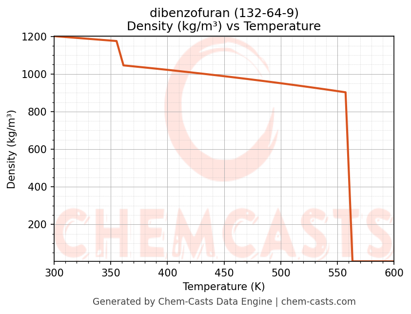 - Specific heat capacity (Cp) indicates the amount of energy required to raise the temperature of dibenzofuran and is critical for energy balance and heat-exchanger design.