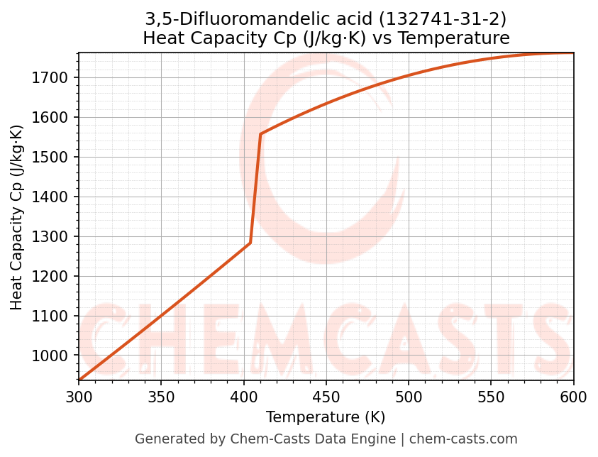 - Specific heat capacity (Cp) indicates the amount of energy required to raise the temperature of 3,5-Difluoromandelic acid and is critical for energy balance and heat-exchanger design.