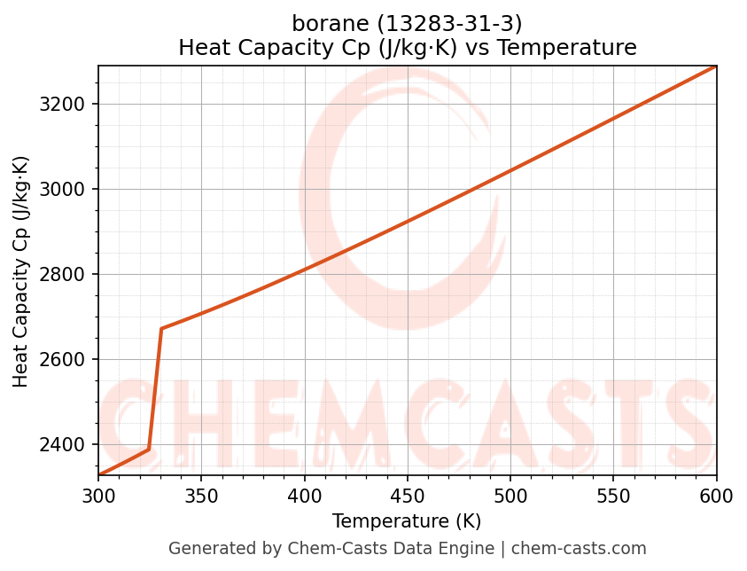 - Specific heat capacity (Cp) indicates the amount of energy required to raise the temperature of borane and is critical for energy balance and heat-exchanger design.