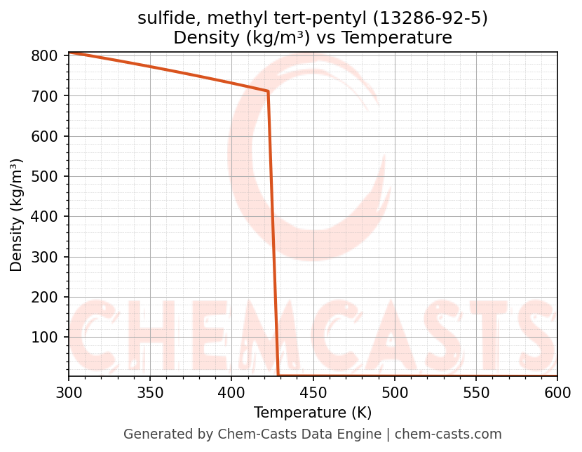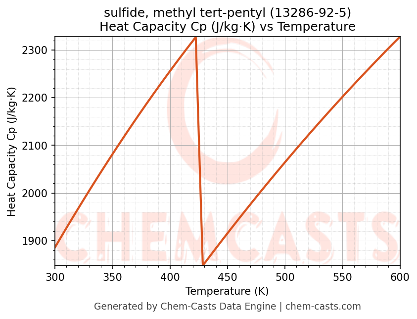 - Specific heat capacity (Cp) indicates the amount of energy required to raise the temperature of sulfide, methyl tert-pentyl and is critical for energy balance and heat-exchanger design.