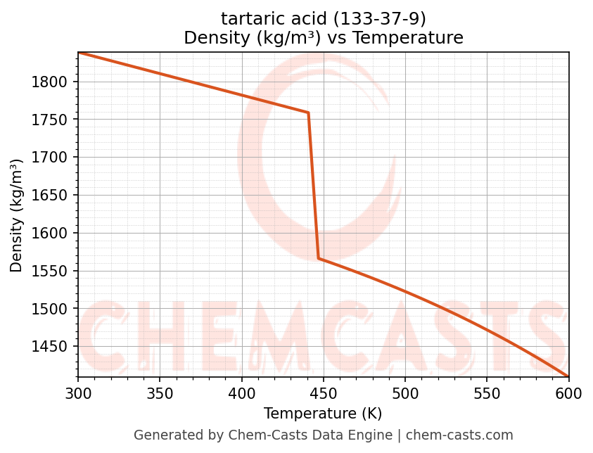 tartaric acid Thermodynamic Properties vs Temperature (CAS 133-37-9)