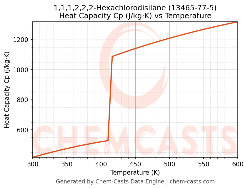 - Specific heat capacity (Cp) indicates the amount of energy required to raise the temperature of 1,1,1,2,2,2-Hexachlorodisilane and is critical for energy balance and heat-exchanger design.