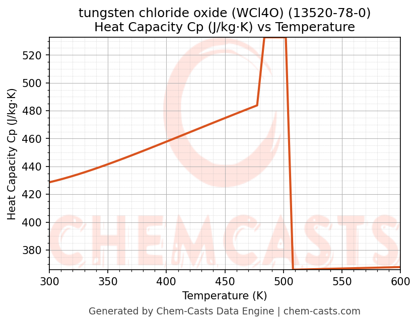 tungsten chloride oxide (WCl4O) Thermodynamic Properties vs Temperature (CAS 13520-78-0)