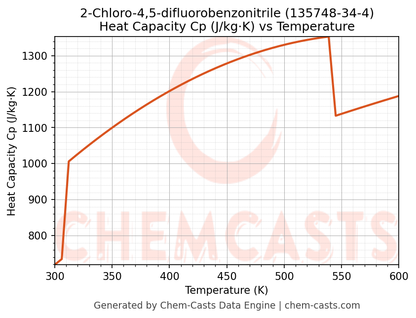 - Specific heat capacity (Cp) indicates the amount of energy required to raise the temperature of 2-Chloro-4,5-difluorobenzonitrile and is critical for energy balance and heat-exchanger design.