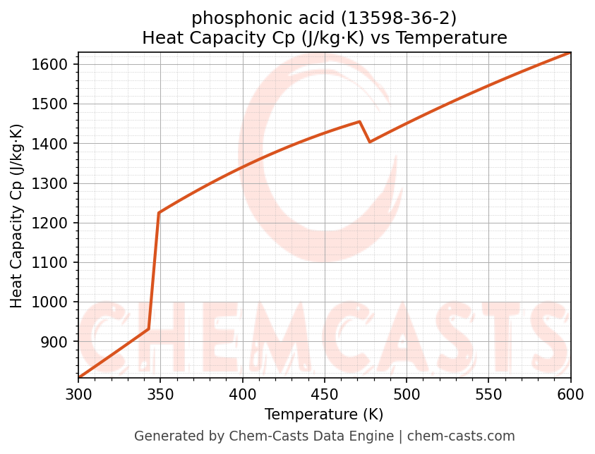 - Specific heat capacity (Cp) indicates the amount of energy required to raise the temperature of phosphonic acid and is critical for energy balance and heat-exchanger design.