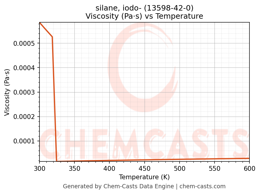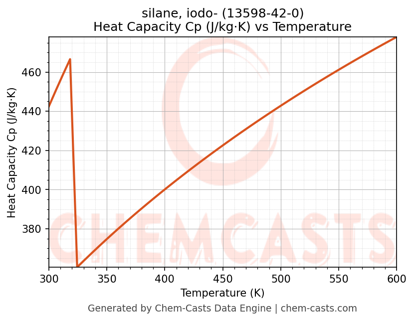 - Specific heat capacity (Cp) indicates the amount of energy required to raise the temperature of silane, iodo- and is critical for energy balance and heat-exchanger design.
