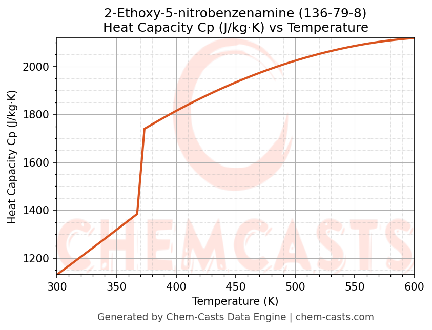 - Specific heat capacity (Cp) indicates the amount of energy required to raise the temperature of 2-Ethoxy-5-nitrobenzenamine and is critical for energy balance and heat-exchanger design.