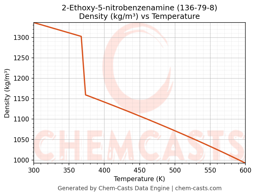 This page presents the temperature-dependent thermodynamic and transport properties of 2-Ethoxy-5-nitrobenzenamine (CAS 136-79-8) calculated at a constant pressure of 1 atm (101325 Pa) over the temperature range 250-500 K.