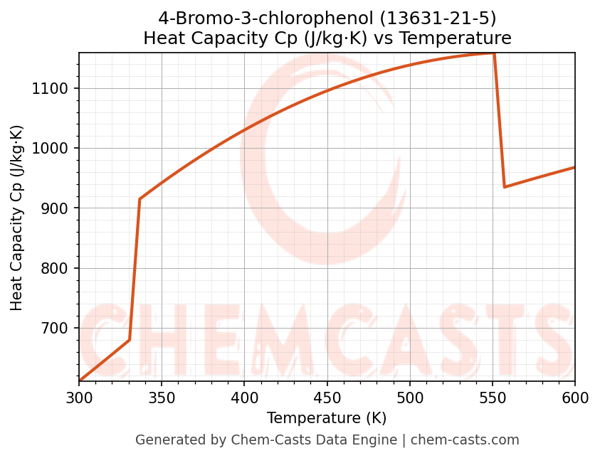 - Specific heat capacity (Cp) indicates the amount of energy required to raise the temperature of 4-Bromo-3-chlorophenol and is critical for energy balance and heat-exchanger design.