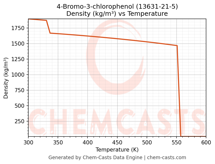 This page presents the temperature-dependent thermodynamic and transport properties of 4-Bromo-3-chlorophenol (CAS 13631-21-5) calculated at a constant pressure of 1 atm (101325 Pa) over the temperature range 250-500 K.