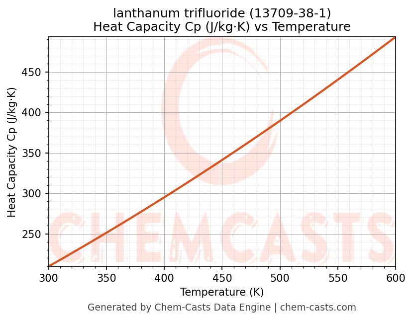 - Specific heat capacity (Cp) indicates the amount of energy required to raise the temperature of lanthanum trifluoride and is critical for energy balance and heat-exchanger design.