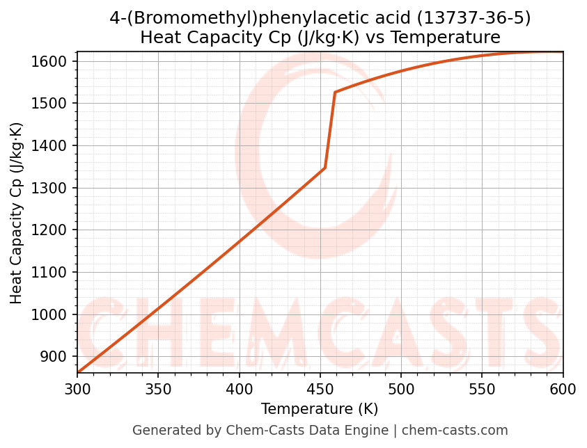 - Specific heat capacity (Cp) indicates the amount of energy required to raise the temperature of 4-(Bromomethyl)phenylacetic acid and is critical for energy balance and heat-exchanger design.