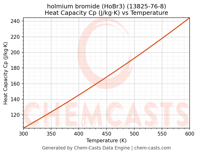 - Specific heat capacity (Cp) indicates the amount of energy required to raise the temperature of holmium bromide (HoBr3) and is critical for energy balance and heat-exchanger design.