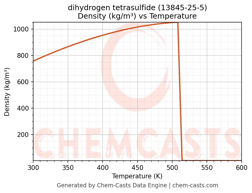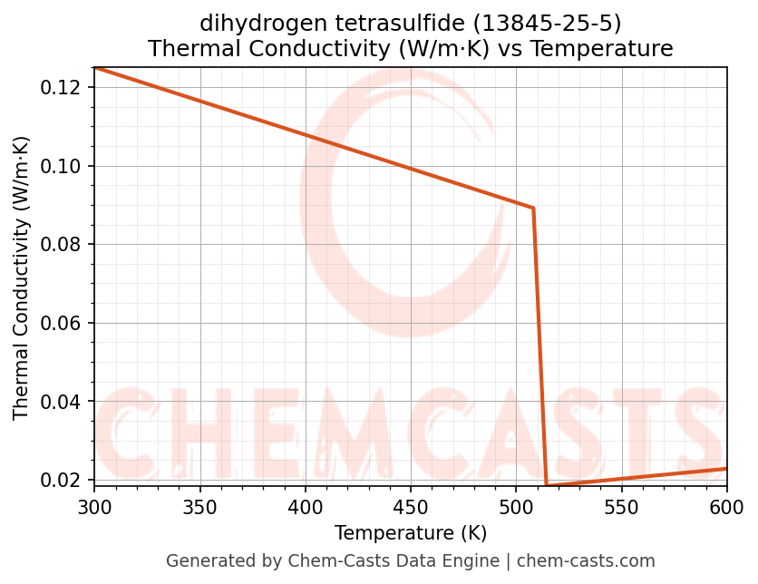 - Specific heat capacity (Cp) indicates the amount of energy required to raise the temperature of dihydrogen tetrasulfide and is critical for energy balance and heat-exchanger design.