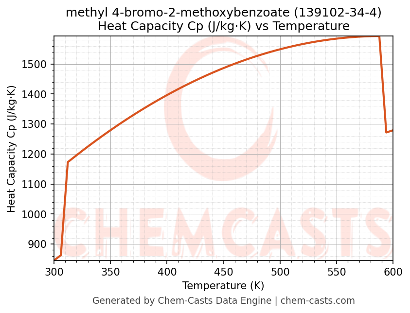 - Specific heat capacity (Cp) indicates the amount of energy required to raise the temperature of methyl 4-bromo-2-methoxybenzoate and is critical for energy balance and heat-exchanger design.
