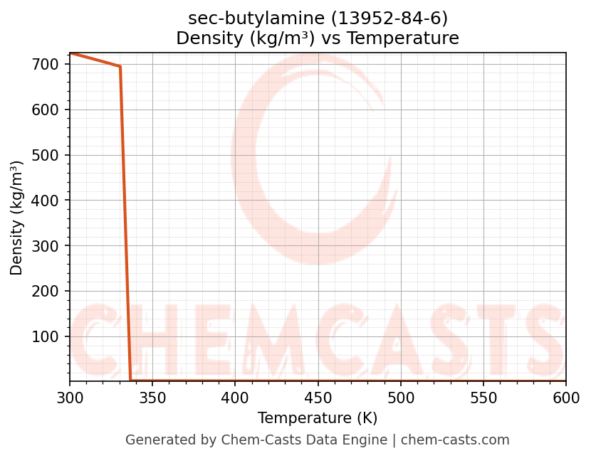 - Specific heat capacity (Cp) indicates the amount of energy required to raise the temperature of sec-butylamine and is critical for energy balance and heat-exchanger design.