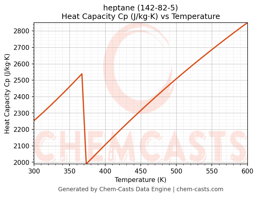 heptane Thermodynamic Properties vs Temperature (CAS 142-82-5)